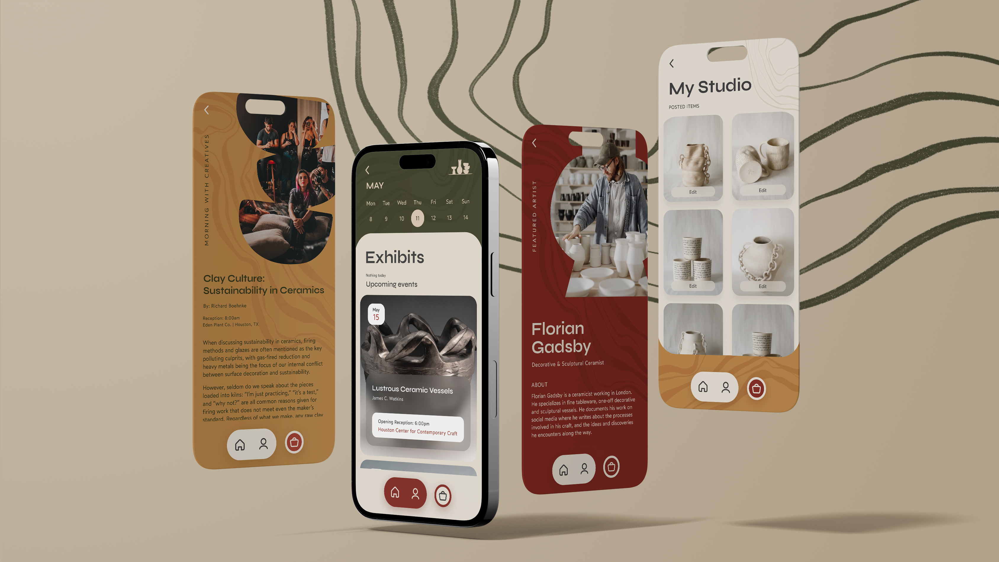 Designed to bring together, connect, and educate the pottery and ceramics enthusiast community, to provide informative content and serve as a space for artists promotion and e-commerce possibilities. The style combines organic colors with the warm and earthy tones of images and type.